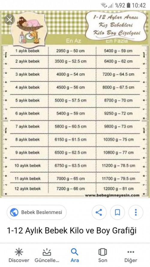 en hizli 6 aylik bebegin boy kilo ve bas cevresi